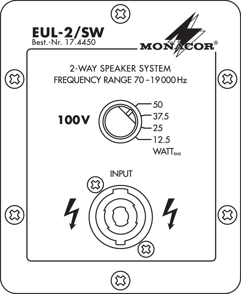 - Para requisitos con frecuencias graves intensas, se aconseja un subwoofer adicional (p.ej., EUL-2SUB/SW)