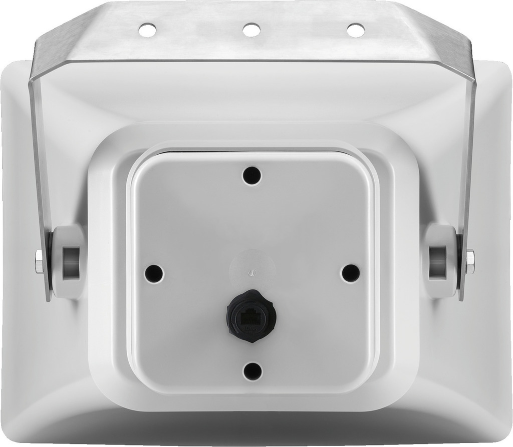 Altavoz de cámara de compresión activa resistente a la intemperie con tecnología de dos vías y forma de bocina musical.