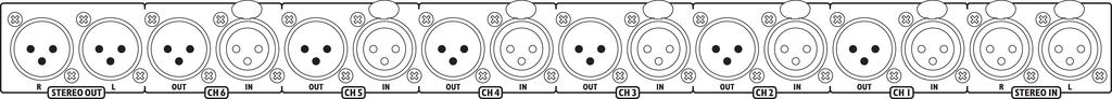 - 6 canales de entrada mono, cada uno con alimentación phantom conmutable de 12 V, control pan pot, LED de señal/clip y selección individual del modo de func.