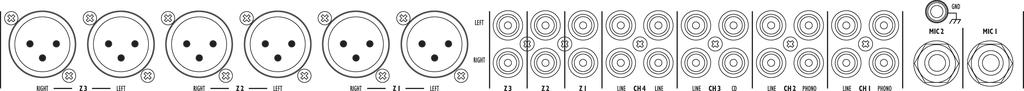 - Salidas de zona, con ecualizador de 3 vías, LED de nivel del Master estéreo, control de balance, escucha prefader (PFL) y selector mono/estéreo
