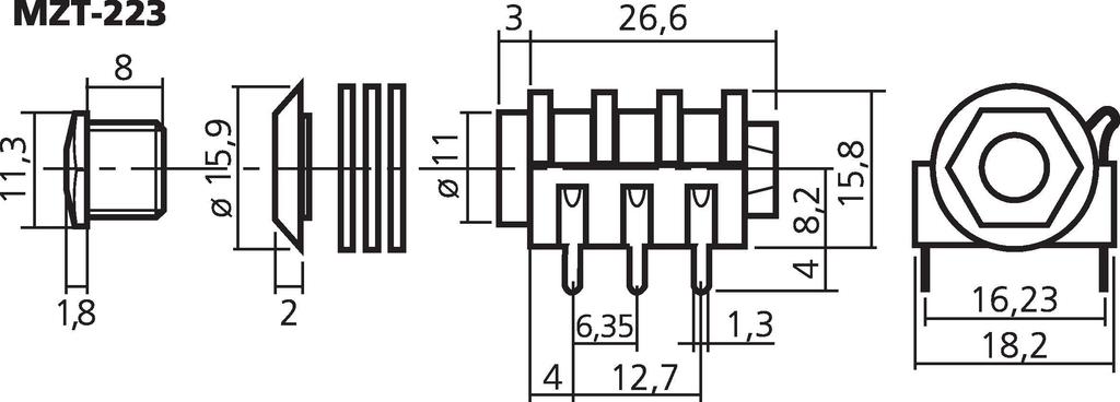 Página de inicio Productos Cables y conexiones Conectores, Tomas Nº de pedido: 0340690 MZT-223 Nº de pedido: 0340690 MZT-223 Toma de panel estéreo de 6,3 mm 3 contactos de conmutación. continuar Iniciar sesión Regístrese en Acerca de Especificaciones Descargas Acerca de Toma de panel estéreo de 6,3 mm 3 contactos de conmutación. Especificaciones Descripción toma de panel Tipo toma estéreo Cantidad 1 Color/codificación de color negro/plata Cantidad de polos 3 Conexiones conexión de 6,3 mm Estéreo sí Contactos 3 Material metal Temp. ambiente admis. -30 a 80 °C Peso 8 g Peso neto 0,008 kg Descargas Datasheet D340690Z