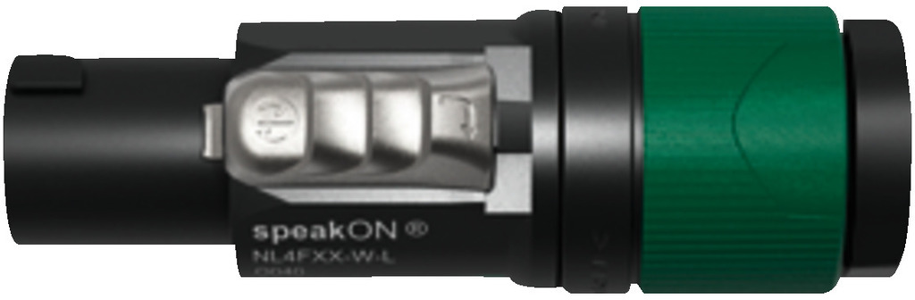 Serie de conectores Speakon para uso profesional para la conexión de altavoces. Diseño general robusto, contactos bloqueables y a prueba de contacto, entrada de cable con mandril de pinza.