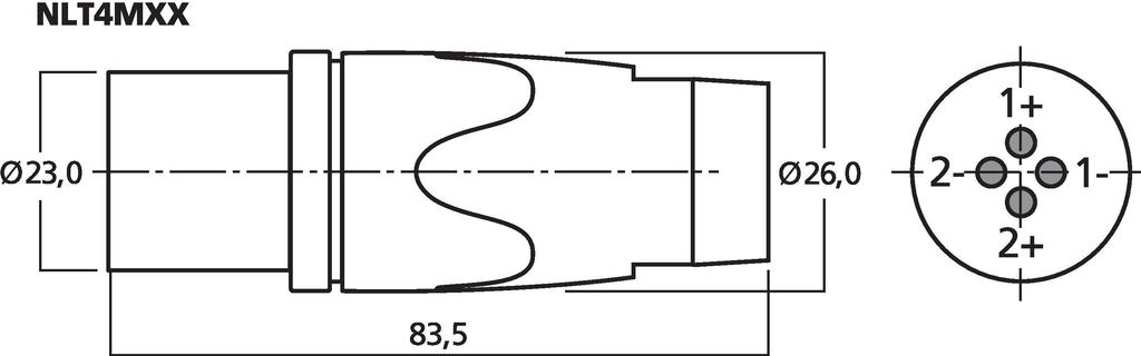 Serie de terminales Speakon para la tecnología de conexión de altavoces profesionales. Diseño general robusto, contactos bloqueables y resistentes al tacto, entrada de cable con pinza.
