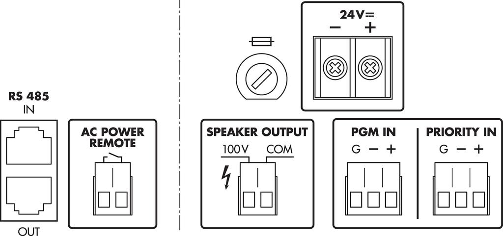 Durante su uso, en las conexiones de los altavoces puede haber una tensión peligrosa de hasta 100 V. Realice o cambie las conexiones siempre con el amplificador apagado.