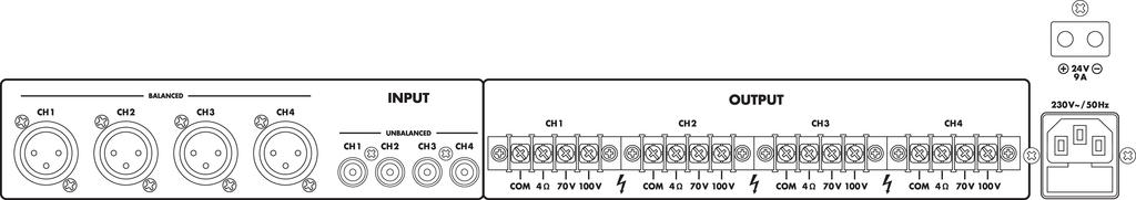 Amplificador para megafonía de clase D, 4 canales