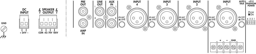 - Mic 1 con circuito prioritario y Talkover automático