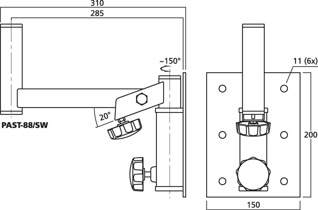 - Pivotante (150° aprox.) e inclinable (30° aprox.)