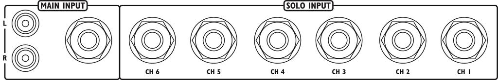 - Entradas: Solo (estéreo) 6x jack 6,3 mm, Main (estéreo) 2x jack 6,3 mm 2x RCA I/D