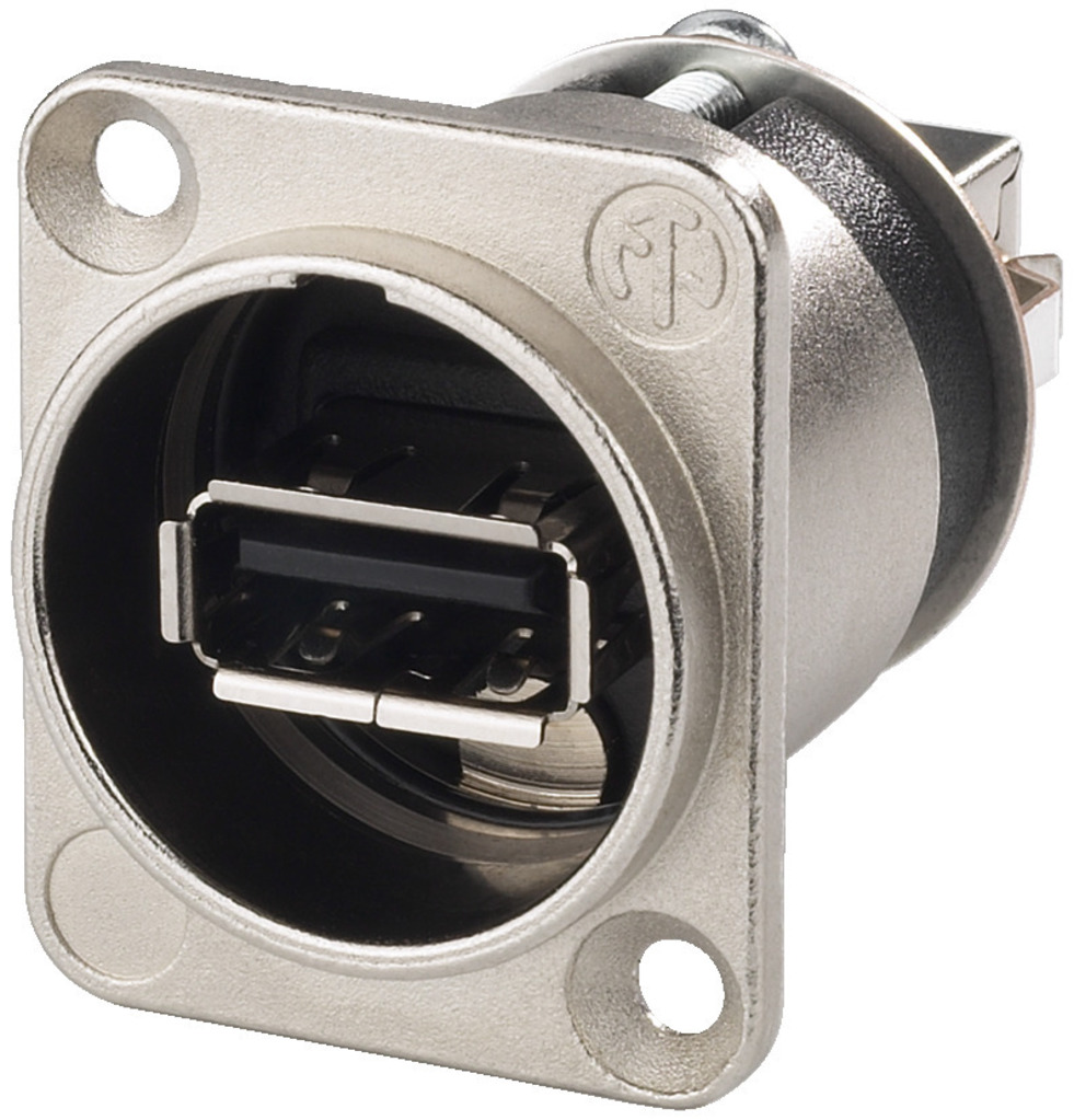 Descripción: toma de panel Tipo: USB de paso NEUTRIK Cantidad: 1 Nº de pedido: 0348650 NAUSBW Tomas chasis USB