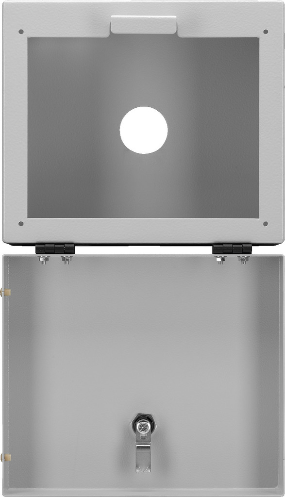 - Tapa fija con bisagras, que se abre hacia abajo, no desmontable, con cerradura
