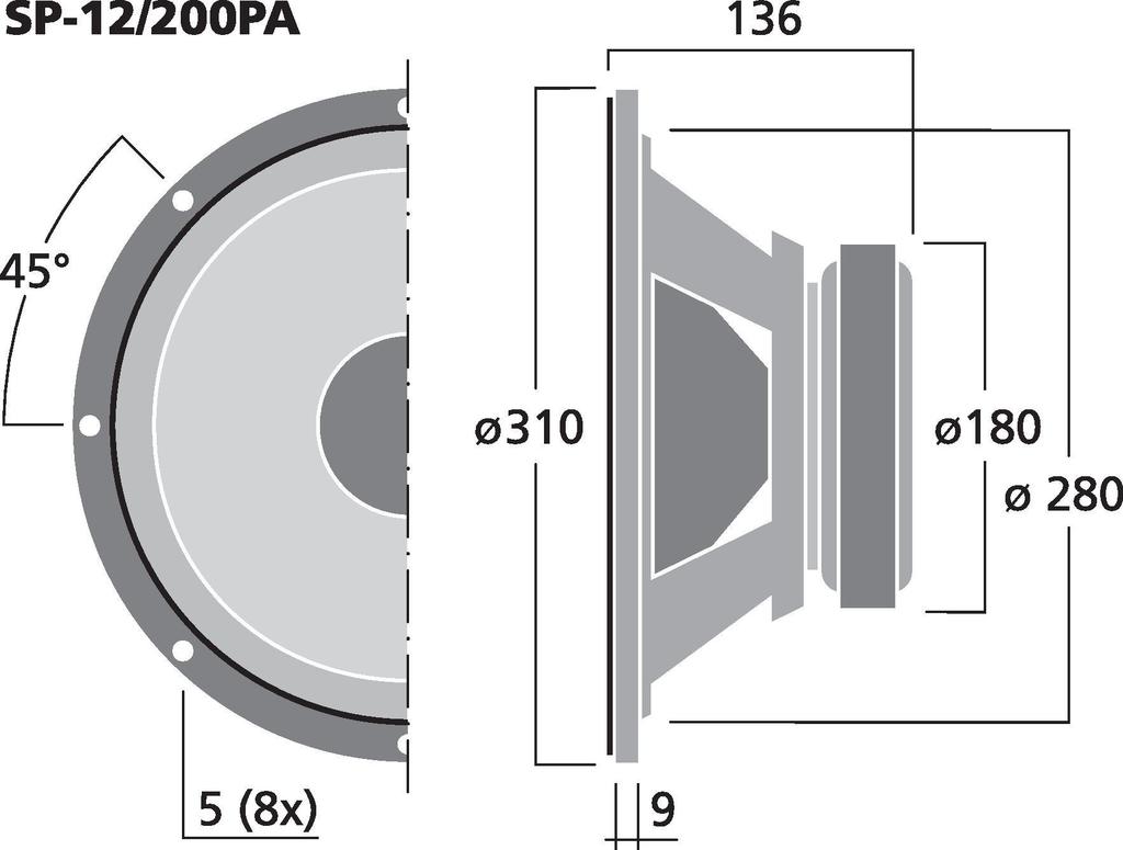 Altavoz de graves-medios para megafonía, 200 W, 8 Ω