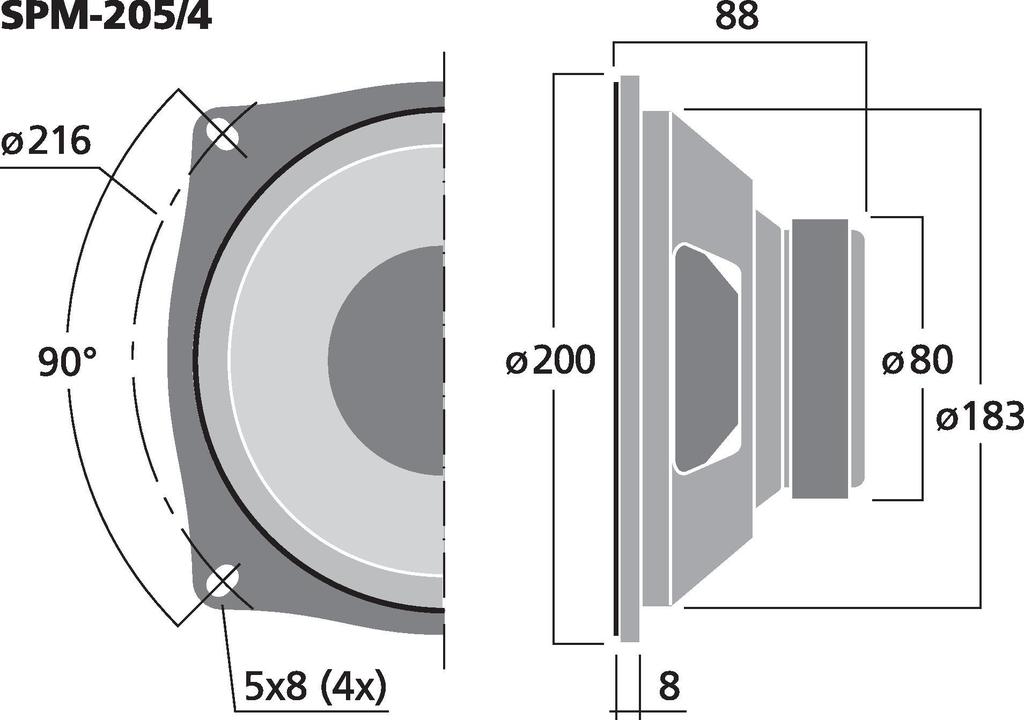 Altavoces HiFi de graves-medios, 70 W, 8 Ω (/8) y 4 Ω (/4)